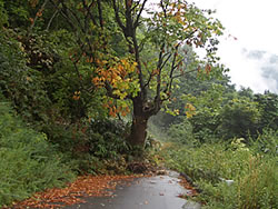 途中からとうとう雨が降ってきた。 次第にざあざあ雨となる。雨の中どんどん下っていき、やっと一ノ沢登山口に到着(12:35)。 | |||||||||||