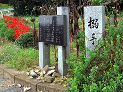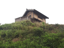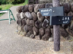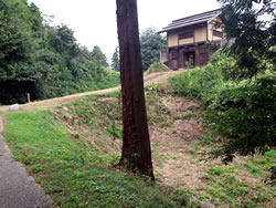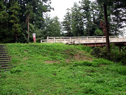 ←本丸とは北堀で区切られた御前曲輪は本丸の詰めにあり、武田軍の猛攻で落城した際に、城主長野業盛以下が自刃した地。 |
