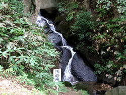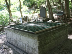 ↑「千葉県印西市の『月影の井戸』。神奈川県鎌倉市の『星影の井戸』とともに「日本の三井」と称される。昭和の初期頃までは『底なし井戸』と呼ばれ、また古老の伝えでは『ひのえ』、『蔭の井』と呼ばれていた。石積みで、深さ約16m、底から北方に岩盤をえぐって約14m横堀されている。今でも豊富な湧き水を溜めている」 |