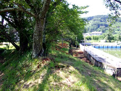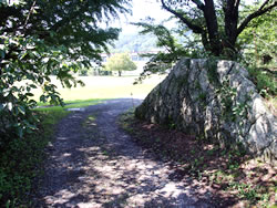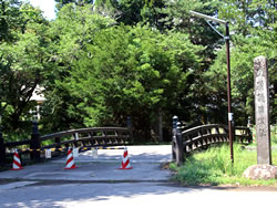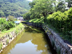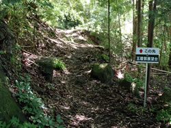 帰りは女性が歩いてきたという林道を歩いて帰ることにした。途中、思った以上に距離が長く、木陰を抜けるとかなりの暑さ。のどかな風景に癒されながら、途中桝形門によって、1時間以上かけて「であいの館」まで戻ってきた。 ちなみにフランス式城郭でありながら、桝形があるのはおもしろい。 |