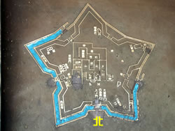 長野県佐久市にある龍岡城は、五稜郭、つまり五角形の星型をした西洋式のお城。 龍岡城は、函館と同じく幕末期に築城され、同じ五角形の星形をしているが、面積は函館五稜郭の4分の1。また、築城した藩主の松平乗謨(のりかた)が幕府の要職で忙しかったため、水堀などが未完成のまま。 |
