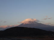 | 塔ノ岳から見る夕日を裾野に抱く富士山(2000.12.03) |