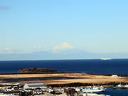 | 葛城山展望台から駿河湾を隔てて見える富士山と南アルプス(左手前の島は淡島) |