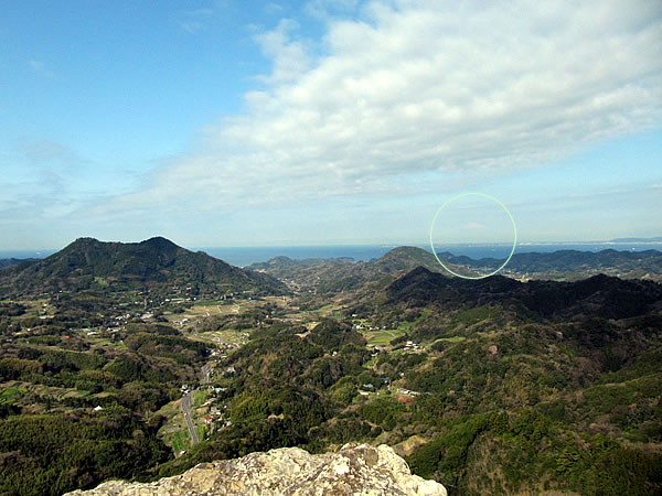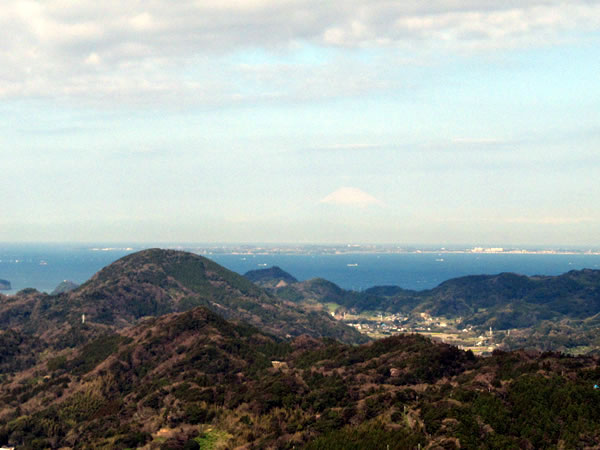 伊予ヶ岳からの富士山(東京湾の向こうにうっすら見える)と富山(左)