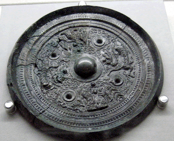 神人(?)と龍と虎の絵が鋳出された三角縁の神獣鏡。